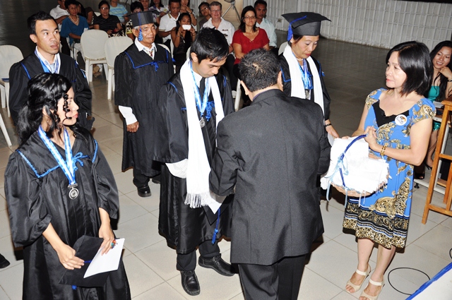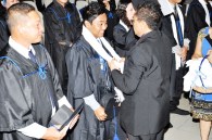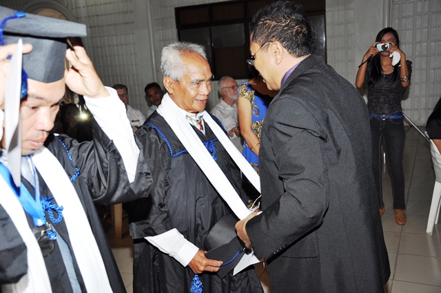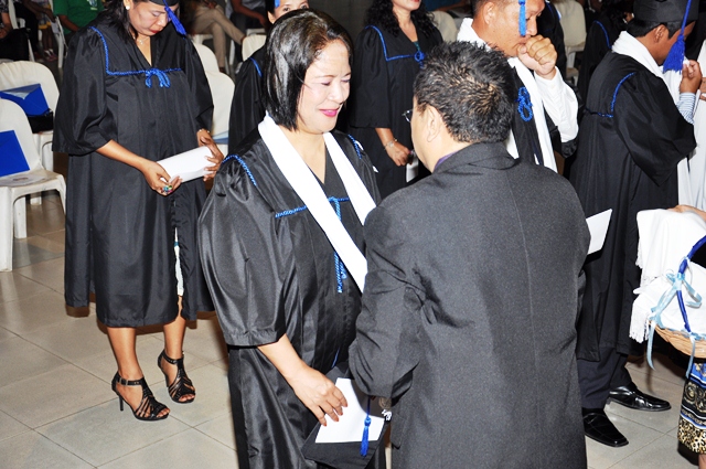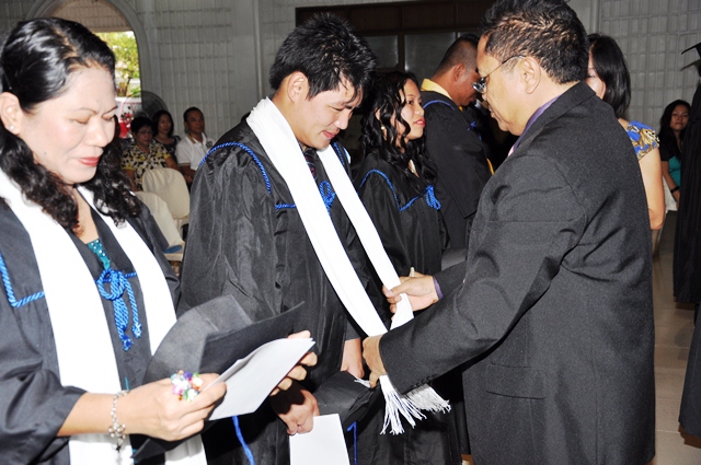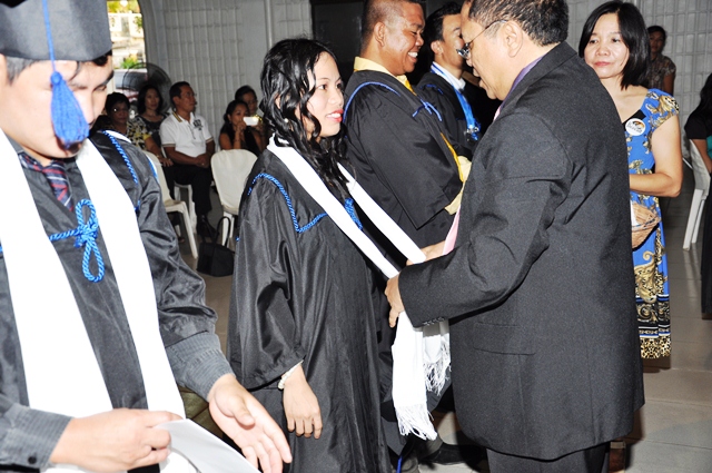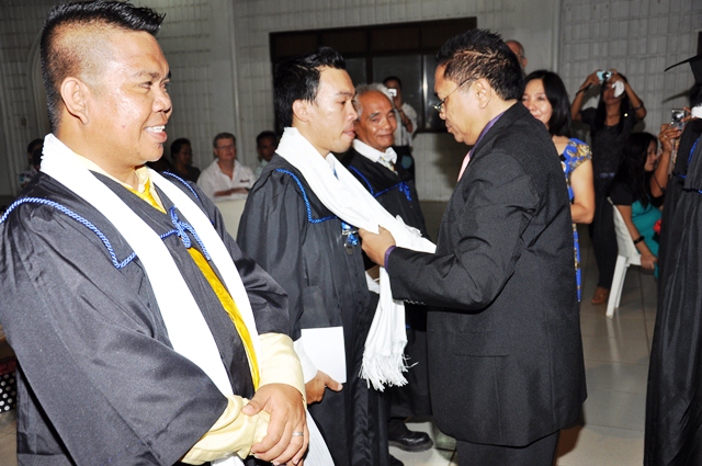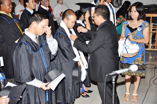 AS a way of welcoming the graduates into God’s last day labor force in expanding the Kingdom of the Lord Jesus Christ through church planting, Rev. Rey Calusay bestowed on each graduate a cloak of servanthood as Rev. Zeny Calusay explains: