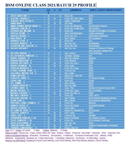 The forty-five students officially enrolled in BSM Online turned out to be exactly the kind of students we aimed to have. The virtual setting has actually opened the way for more to join the class. In the face to face setting we have limited our students to twenty-five.