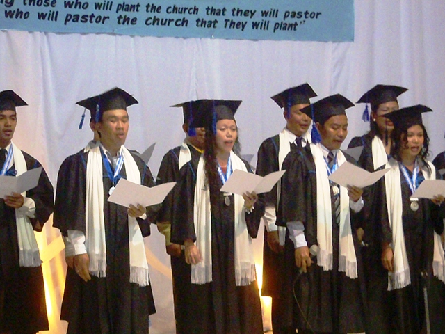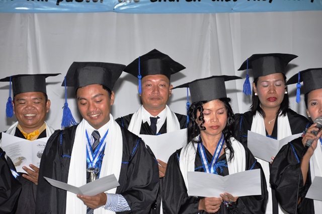 AS a way of welcoming the graduates into God’s last day labor force in expanding the Kingdom of the Lord Jesus Christ through church planting, Rev. Rey Calusay bestowed on each graduate a cloak of servanthood as Rev. Zeny Calusay explains: