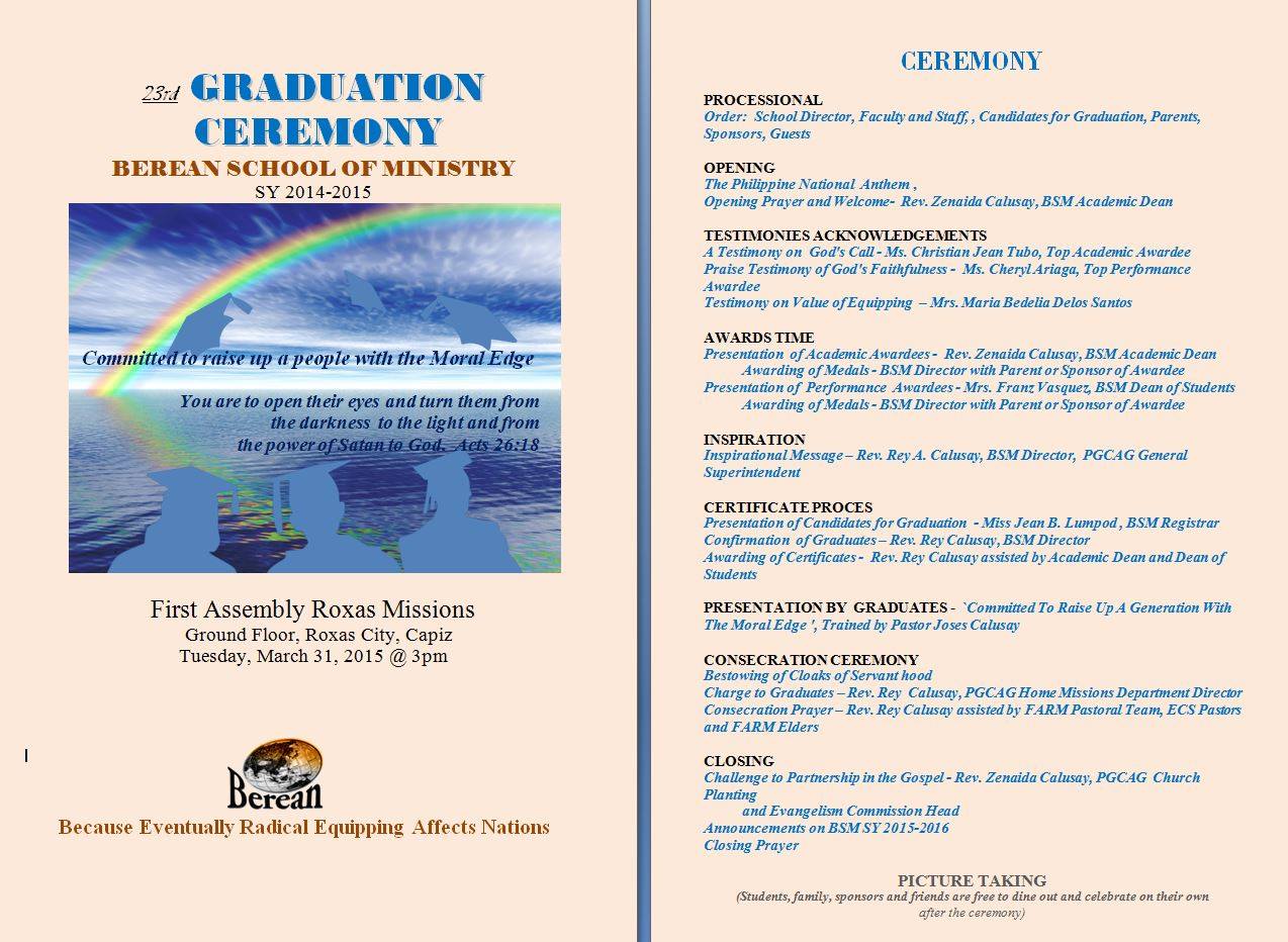 For their class presentation during graduation, BSM Batch 23 prepares to perform a group spoken word. Their piece is entitled `Moral Edge’. The piece was originally written by Rev. Rey Calusay and edited by Joses Calusay for the students. The later likewise trained the students.
