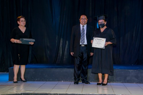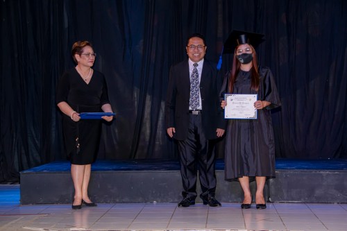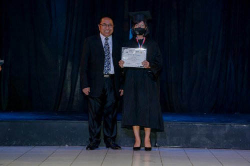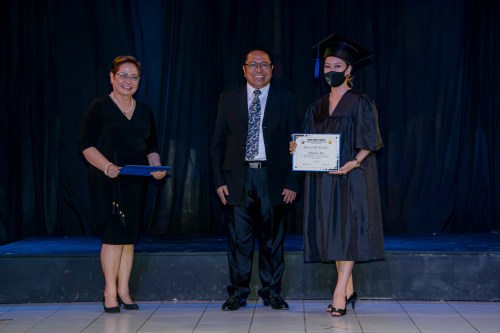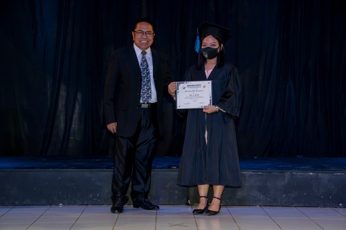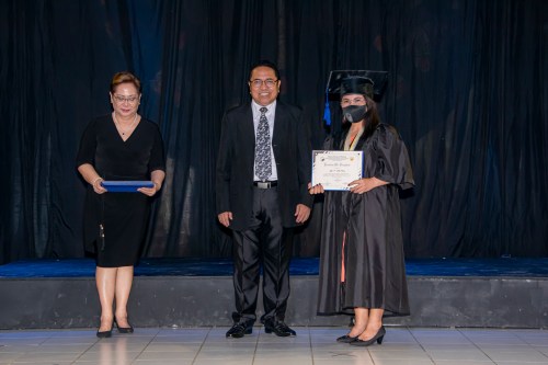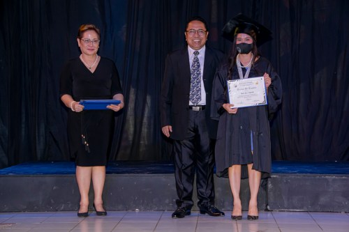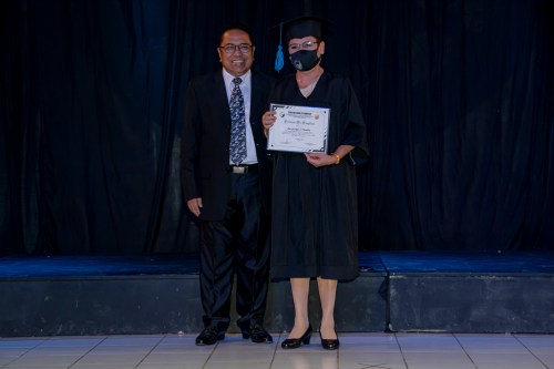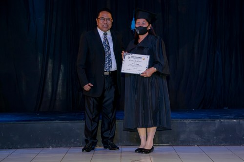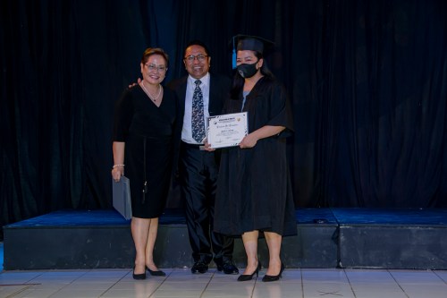 BSM Director Rev. Rey Calusay and BSM Academic Dean Rev. Zeny Calusay grants certificates of completion to graduating students, assisted by BSM Registrar Jean Lumpod
