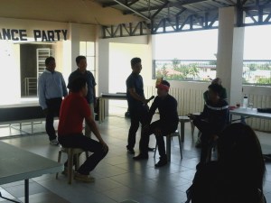 The BSM men take opposite sides of a given question and engaged in a discussion. The activity was intended to give them practice on being deliberate in taking the positive roles in participating in a discussion. The ladies listened and identified the roles each participant played: Initiator, information-giver, harmonizer or clarifier. There were some who were identified to have played the negative roles of antagonizer and dominator. But for sure, they did it for fun.